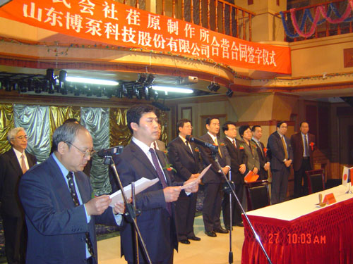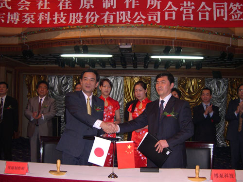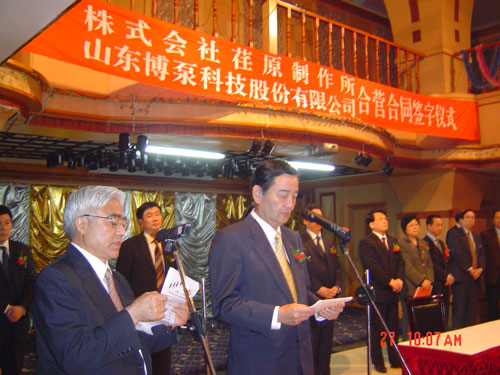 新聞中心 2005年4月27日,在博山萬杰國際大酒店山東博泵科技股份有限公司與日本株式會社荏原制作所正式簽署了注冊資本1100萬美元的合營公司――荏原博泵有限責任公司。該公司的建立將通過引進世界最大的泵企業(yè)――日本株式會社荏原制作所的先進技術,加快大型泵、高壓泵國產(chǎn)化進程,建成具有國際競爭力的一流企業(yè)。為中國水電、核電及超臨界火電項目,為南水北調(diào)等大型水力工程提供高質(zhì)量、高技術含量的一流泵產(chǎn)品,提升中國機械工業(yè)技術、質(zhì)量水平,促進產(chǎn)品更新?lián)Q代,為中國電力、冶金、水力事業(yè)的發(fā)展乃至中國國民經(jīng)濟的發(fā)展做出應有的貢獻。
