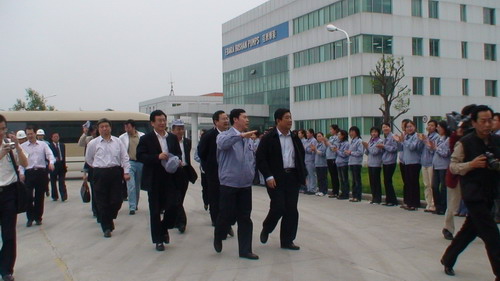 孫龍平總經理就我公司的生產及發展前景作了介紹。全哲洙書記向井上博文董事長了解了我公司產品的核心技術、原材料市場等問題,最后,全哲洙書記對荏原博泵的發展寄予了厚望,并希望中日雙方能夠盡快實現資金、產品和技術的合作。