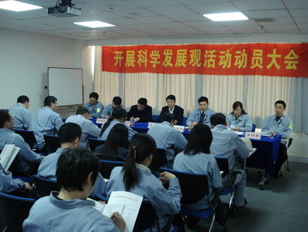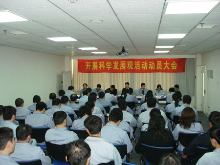 動員大會由總經理孫龍平同志主持。會上,首先宣讀了《關于成立公司學習實踐科學發展觀領導小組的通知》,荏原博泵黨總支副書記姜作棟同志宣讀了公司《深入學習實踐科學發展觀活動的實施方案》,明確了各階段的任務要求和具體責任人,并公布了公司信箱、意見箱,鼓勵廣大黨員、群眾對公司開展好學習實踐科學發展觀活動獻計獻策。