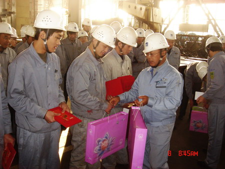 12月7日早上,利用晨會時間,公司召開了生產車間全體員工大會, 分管生產的王興春副總和生產部部長三森先生親自將高新區頒發的證書和獎金以及公司為參賽選手買的獎品一并發到他們手中,并鼓勵大家向他們學習,認真鉆研技術,勤奮工作,為公司的發展做出自己應有的貢獻。