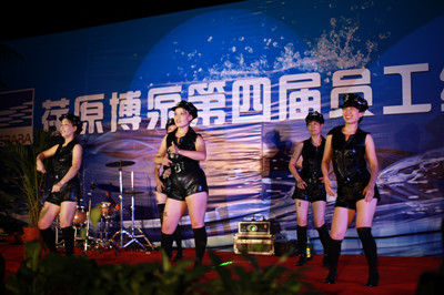 18:30分,晚會節(jié)目正式開始,首先在晨曦樂隊激情飛揚的搖滾歌曲聲中拉開了晚會的序幕。晚會節(jié)目有獨唱、小合唱、舞蹈等等,演員們的精彩表演,博得了員工們陣陣掌聲和喝彩。特別是生產(chǎn)部門女職工排練的舞蹈,動感十足,展示了女員工的多姿多彩的精神風貌。常務(wù)副總經(jīng)理王正軍的一曲豪邁的《紅旗飄飄》,抒發(fā)了荏原博泵員工的愛國情懷;北京事務(wù)所的王信東部長帶來了抒情歌曲《別問》;王虹權(quán)、袁磊、趙喜鵬、周新菊、肖旭、竇群、蔣祺、張雷雷、徐道義、董旭光等員工先后表演了自己準備的節(jié)目;職工子女表演的拉丁舞更是把晚會的氣氛推向高潮。