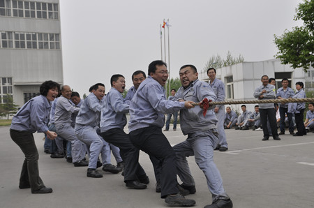 新聞中心為慶祝五?一勞動節,公司工會舉辦“第五屆員工拔河比賽”。4月30日下午,在辦公樓前200多名員工參加的拔河比賽正緊張進行。參賽隊伍共有八支男隊、四支女隊。經過緊張的角逐,焊接物流隊以絕對的優勢力拔頭籌獲得男子冠軍,生產裝配隊獲得男子亞軍;生產部女隊獲女子冠軍。