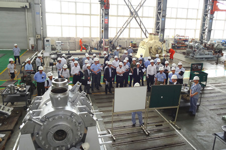 這次生產革新大會的目的是加速推進荏原集團內部各工廠的生產革新活動的開展,目標是生產周期減半、庫存減半、最大限度地提高生產效率,降低成本,增強企業競爭力。通過生產革新活動,達到從現場改善提升到管理系統改善、人的改善的目標,使“產品制作”流程優化。在這次大會上,公司總經理王正軍向與會代表介紹了EMZ的經營發展狀況,并帶領與會人員參觀工廠,詳細介紹了生產革新的進展情況。